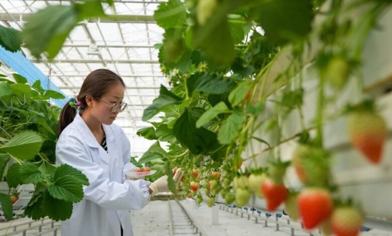 اختارت الصين، أخيراً، أكثر من 200 منتج في الدفعة الأولى من قائمة المنتجات الزراعية الشهيرة والخاصة والممتازة والجديدة لعام 2025، إذ أصبح التمكين التكنولوجي قوة دافعة مهمة لتنشيط المنتجات الزراعية. وفي الصورة عاملة فنية تتابع نمو المزروعات في إحدى الصوب النموذجية بمقاطعة تشيجانغ. (إيكونومي دايلي الصينية)