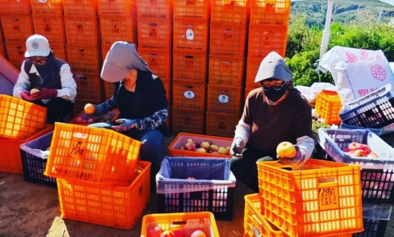 استقبلت قرية استصلاح منجم الفحم دافانبو، التابعة لمنطقة منغوليا الداخلية ذاتية الحكم في الصين، موسم حصاد وفير لفاكهة التفاح. وفي الصورة، مزارعون أثناء فرز المحصول بالقرية. (إيكونومي دايلي الصينية).