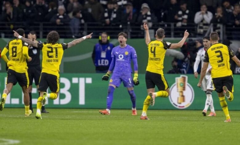 تأهل بروسيا دورتموند بصعوبة بالغة لدور الـ16 في كأس ألمانيا لكرة القدم على حساب مضيفه آينتراخت فرانكفورت. تقدم فرانكفورت بهدف مبكر سجله أنسجار كناوف بعد مرور سبع دقائق.